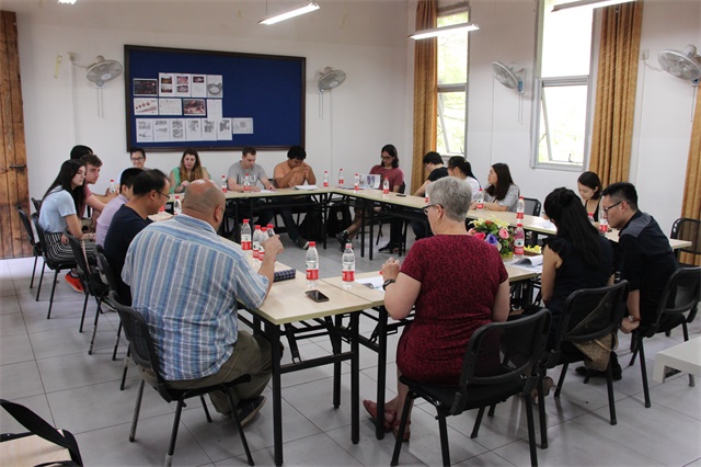座谈会上,与会嘉宾用英语做了自我介绍,虽然有的同学英语不太流利,但却并不影响大家其乐融融的氛围。关院长为所有国际交换生和对接志愿者代表详细介绍了本次交流的项目设计,并针对每一个项目设计进行了耐心的讲解,钓鱼城、大足石刻、社区交流......顿时吸引了所有人员的兴趣。
