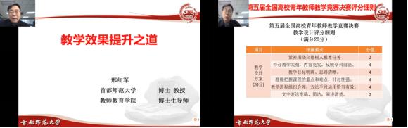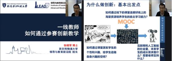 11月28日,来自首都师范大学教师教育学院的邢红军教授,以 “立德树人+教学设计+教学技能的课堂教学效果提升之道”为主题,为参培老师们详细讲解了如何借助教学过程渗透立德树人的因素,基于教学案例诠释教学设计的奥妙,以及采用视频播放点评教学技能的精髓。通过专业的解读,透视课堂教学效果提升的诀窍与要素。西交利物浦大学教育前沿院院长张晓军教授,以“一线教师如何通过参与比赛创新与改变教学”为主题,与大家分享和讨论了如何选择适合自己的教学比赛,如何把备赛和自己的课堂教学结合起来,通过参赛迭代改进自己的教学实践的思考和经验。