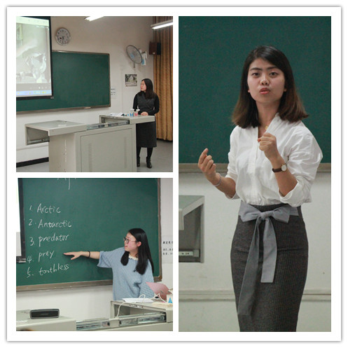 语言类课程中,应用视频、教学辅助软件等不同方式和手段,使教学过程更丰富、立体,寓教于乐。黄煌老师借助教学辅助软件,帮助学生表达观点,她巧妙地将课堂时间设定在了4月1日。课上,她先鼓励大家大胆思考出动物身上可能具备的一些神奇本领,之后,她播放了一则关于企鹅飞翔的纪录片,并引导大家在短片里提取重要信息,就在课程结束之前,她突然放出了揭露这个伪纪录片的证据,大家恍然大悟,在嬉笑声中结束了课程。