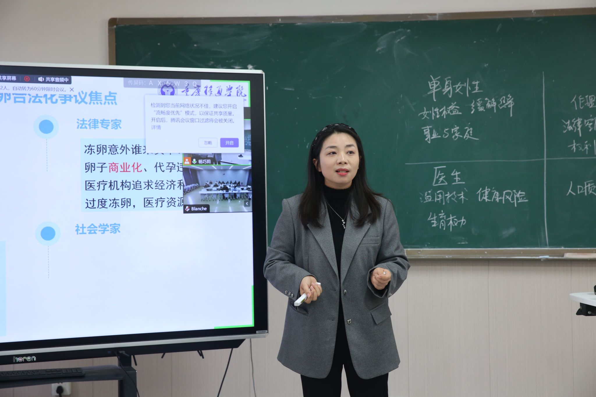 比赛伊始,钟婷婷老师带来《曲线的凹凸性与生态保护》课程,从举世瞩目的港珠澳大桥为了避开中华白海豚保护区的曲线设计,引出曲线凹凸性的讲解,层层递进,循循善诱。杨阳老师的《大国崛起》讲述了大国崛起的概念、性质、条件,展望了中国崛起的意义,展现了丰厚的文化积累和知识储备。陈春彦老师在《辅助生殖技术与生育控制——单身女性冻卵合法化问题》课程上进行真实案例分析,提出冻卵问题已成两会热点,并以角色扮演游戏与学生互动,讨论冻卵的争议,妙趣横生。黎美茜老师通过设问、采访、小组讨论等形式生动阐释了cultural stereotypes(文化刻板印象)的含义。吴慈荷老师的《技术、真理和立场》启发学生思考技术与真理的关系,并鼓励学生思考过度发展科学技术,忽视人文发展的结果。陈曦老师带来的《逃出大英博物馆——短剧内涵与时代价值》从传播学视角,通过与同学互动分析了短剧爆火的原因,生动有趣,发人深思。
