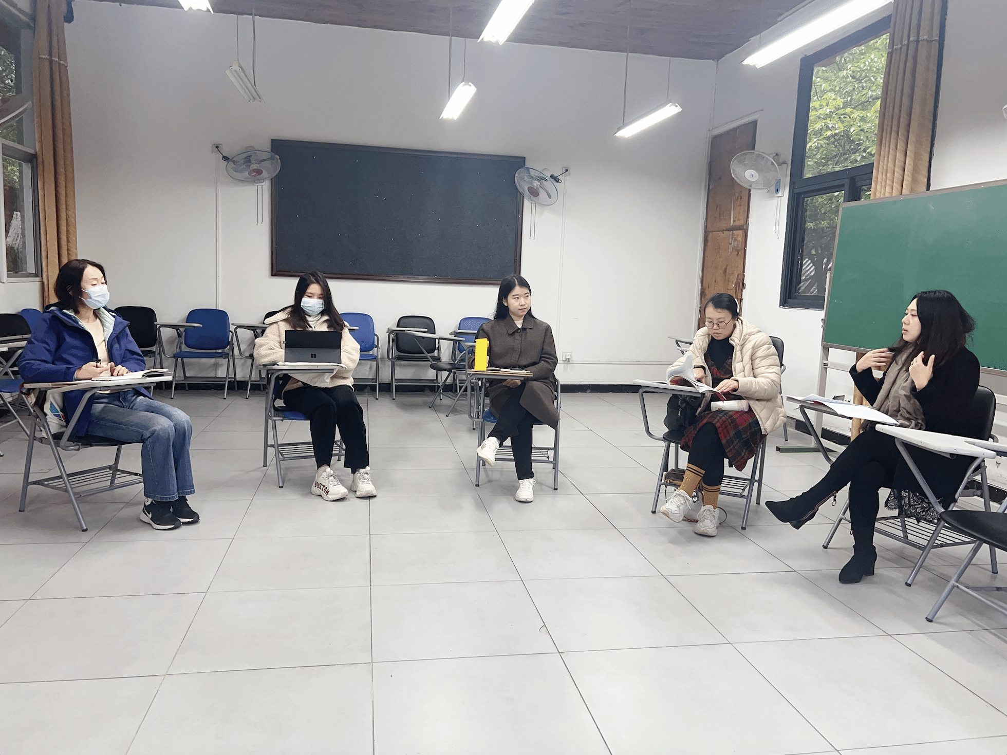 基于戴老师与黄老师的分享,在座的几位英语教师就自己的跨文化课程展开了热烈的讨论。陈玥老师提到跨文化课程建设需重视学生探究式学习的过程,鼓励学生批判思考,强调课程重点,并给予学生反馈,以此作为课程建设的支撑点。王楚涵老师谈到,在与各位老师的思维碰撞中,对于自己在市场营销课程中的教学设计也有了一定的启发,比如可以通过案例分析培养学生解决跨文化市场挑战的能力,为学生提供更广阔的思维空间,培养他们在国际市场中的竞争力。