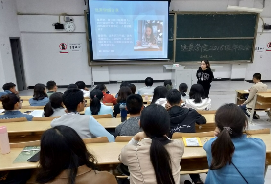 同时,为更好的发挥朋辈榜样作用,本次年级会还邀请了远景学院2015级张思逊同学、2016级邓晶同学为大家分享。