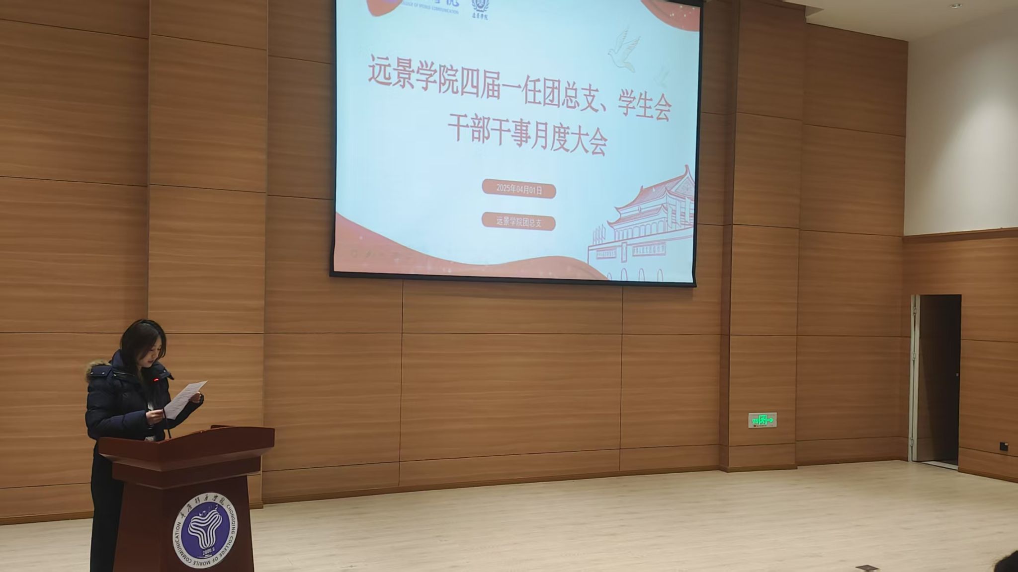 活动伊始,远景学院四届一任团总支学生会主席团成员上台作月度工作总结汇报。他们全面回顾了过去一个月学生会各部门的工作开展情况。在3月,团总支学生会积极组织开展各类活动,成果丰硕。其中,以“雷锋月”为契机,开展11次志愿服务活动,同学们踊跃参与,用实际行动传承雷锋精神,为校园和周边社区带来了温暖与帮助;在竞技体育、艺术修养、社团活动中学院也通过积极组织开展了形式多样的活动。