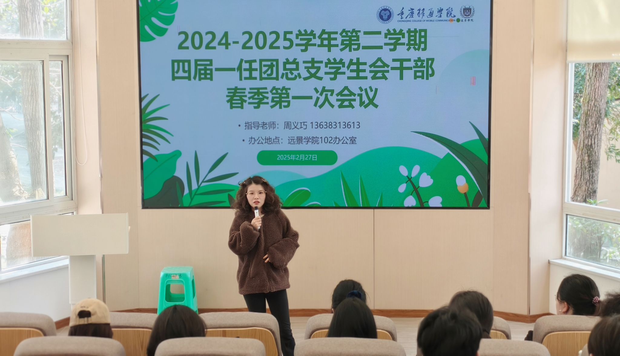 为进一步加强学生干部队伍建设,明确新学期工作方向,2025年2月27日,远景学院四届一任团总支学生会干部春季第一次会议在菩提大讲堂召开。本次会议由远景学院团总支学生会指导老师周义巧主讲,团总支学生会全体干部齐聚一堂,共同开启新学期团学工作的新篇章。