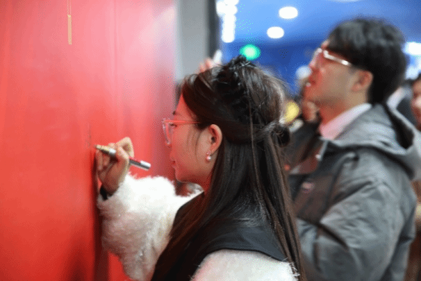 干部干事们从红毯上纷纷入场并签下自己的名字