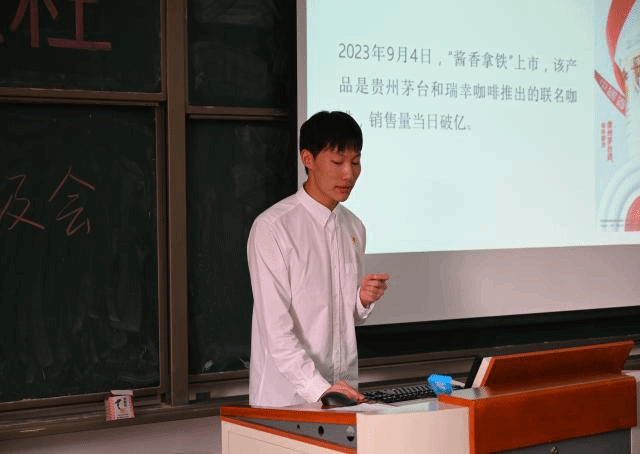 会议开始,主讲人龙昌江用瑞幸咖啡和茅台联名的酱香拿铁销售破亿的案例开场,生动有趣地引入了文化跨界的概念。两个品牌的合作是传统文化与时代元素有机结合,不仅具有深厚的文化内涵,也是我国文化自信的体现。此案例引发了同学们对文化自信的思考。在观看完《逃出大英博物馆》的视频后,同学们展开了“作为新时代的青年,如何传承好传统文化”的激烈讨论。同学们在讨论中积极发言,表达了自己的观点。通过讨论同学们总结出了一个共识:传承传统文化不仅仅是简单地传承,更应该与时俱进,在深入了解传统文化、认同中华文化的基础上,将传统文化与现代社会相结合,以更具包容性和创新性的方式传承和发展。