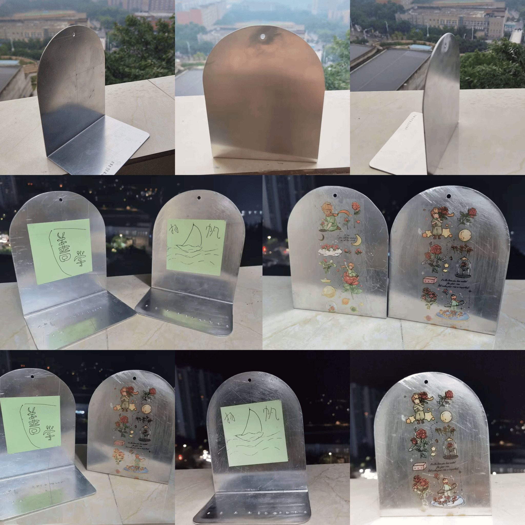 与此同时,远景学院2022级03团支部还给小朋友们带来了一份有意义的“礼物”,利用他们周末时间走进金工实习处,用自己所学专业知识,用锉刀,铁锤,锯条,抛光轮,游标卡尺等工具制作成的书立。通过绘图,然后根据作品图纸要求下料,选择一面划线,随后用剪板钳剪出圆弧轮廓,根据图纸要求先用粗齿锉锉出圆弧及R角,再钻孔,并去锐边及毛刺,然后折弯,最后利用专用字钉在作品面上敲出要求字体,他们用自己所学专业用心做出了一份份“沉甸甸”的礼物。