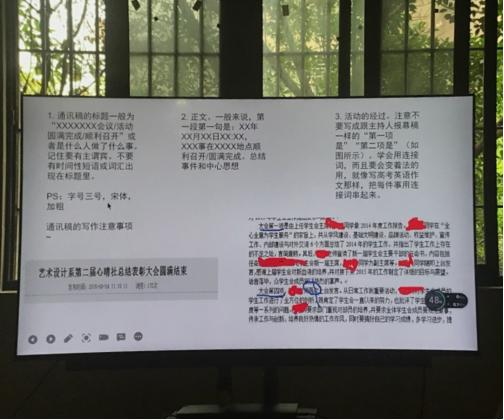 讲座期间,李老师展示了部分新闻原稿并帮助指导学生们发现问题并加以改进,以一种轻松自在的氛围与学生积极互动,帮助同学们理解并吸收了讲座的思想和精髓。我们有理由相信,这次讲座对于社委同学的影响将是重大而深远的。