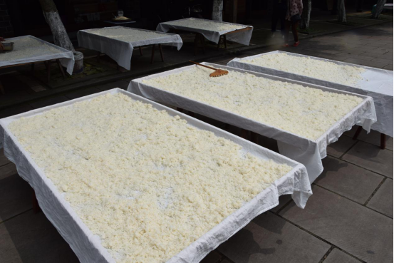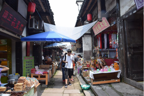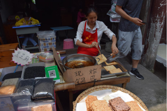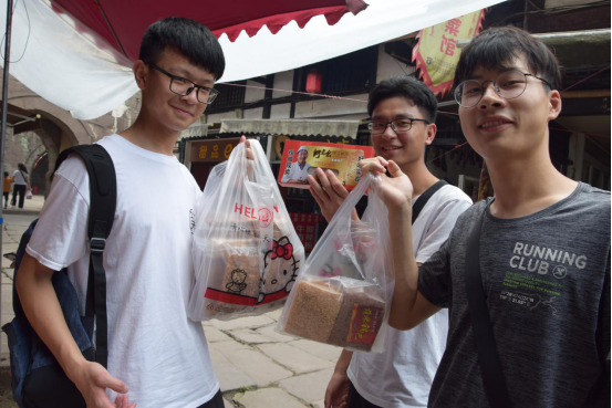 下了车,映入眼帘的便是涞滩充满历史气息的建筑风格,令人充满好奇和憧憬,迫不及待想要近距离去感受那股古镇风情。进入古街,两旁的商铺热情的吆喝着,各式各样,应接不暇,吸引着同学们的目光。其中大多数店铺都卖着本地标志性的美味荫米,它可是这里的骄傲,传承悠久。再往里走,街上两边更是四处飘香,卖着丰富多样的特色美食——荫米锅巴,腊肉,豆腐乳,手工桃片,小龙虾等等,都是这里的土特产,纯手工制作,看起来风味十足。同学们兴奋地开始品尝,鉴定了它们的好味道后,每个人都买了很多小零食,来过的老成员也买到了心心念念的醇香荫米锅巴,为涞滩古镇的美食手艺人们点赞。