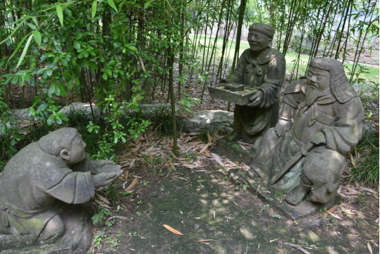 随后,同学们一起来到了涞滩古镇后方的一个游园参观。游园里面有一个清幽的小湖,不同于上次同学们来到时看到的破败萧条,此时,湖中已布满了青青荷叶和水白菜,充满了生命的气息,远处还有小野鸭在湖中游荡,悠闲、憨态可掬,很是喜人。此外,游园中还有许多生动有趣的小雕塑,矮小,可爱,使得同学们一一忍不住为他们定制了专属表情包,在群里展开了逗乐分享。