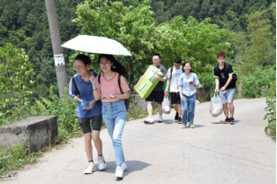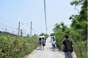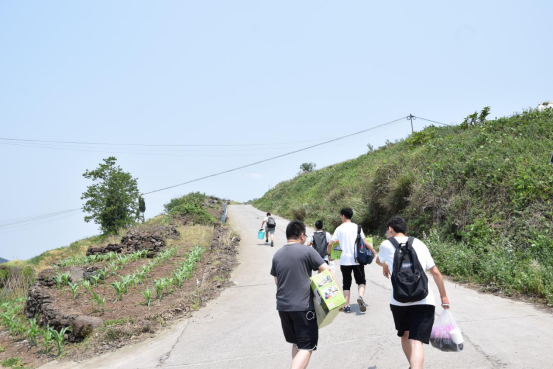 在社长的带领下,同学们迈开了登山爬坡的步伐。此时,阳光直射大地,一眼望去,到处是亮堂堂的,十分开阔明朗,景色秀丽怡人,令人惊喜的是山间的风,迎面吹来,非常的凉爽,像是天然的“冷气扇”,让人心情大好,忘记了爬坡的艰难,闲情逸致地欣赏起了路途中美丽淳朴的乡村风光:有满是鲜花的农家小院,有热情好客的田中阿姨,有艳丽多彩的路边小花,有生机盎然的蔬果菜苗……各种新奇,别有一番特色。