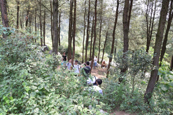 又经过10分钟的短暂车程,同学们终于到达了三汇石林的山脚下。抬头望去,山高路远,且头顶着大于30°的高温,还没开始攀登同学们的内心就涌现出一股燥热。但,真正的徒步之旅才开始,考验大家意志力的时候到了。