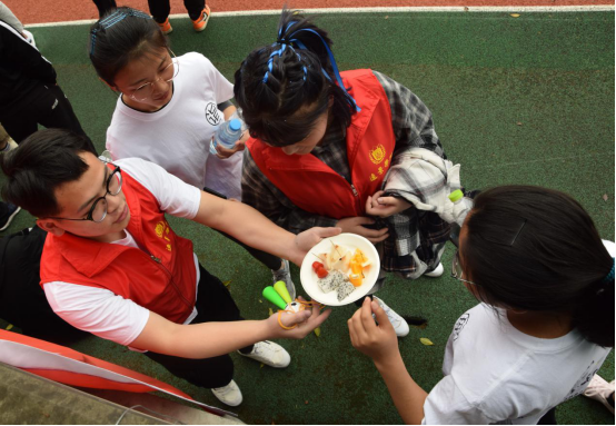 运动会期间,饕餮川菜社也早早的来到了现场,在看台上如火如荼地制作着运动轻食。此次他们面向远景全体远动员,为运动健儿们提供可口的鲜榨果汁、爽口的水果沙拉等,为他们助力,补充必要维生素,增添运动活能量。