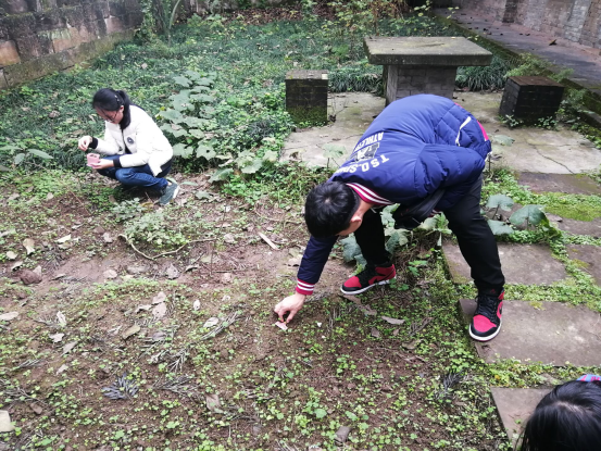 社长见有些植物的土比较稀少,将大家带入盆栽协会的秘密基地为大家增加了植物的营养土,分发了化肥,及时为植物补充了所需营养。“我想去看看上次的种子发芽了吗?”这句话激起了大家的好奇心,于是大家往前走,一起去上个月播种种子的那块土地,发现种子们还没有破土而出的迹象,倒是生长出了野生的三叶幸运草,为这片土地增添了生机。