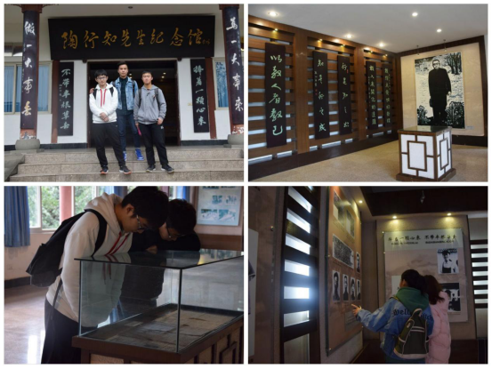 紧接着,同学们走进了旁边的陶行知先生纪念馆。在馆中,对陶行知先生的生平介绍地更加完整详细,一点一滴都有着他的痕迹,一字一句都写满了对他的赞颂,他为教育而奋斗的一生真实地呈现在了同学们的眼前,不由得令人感叹伟人易逝,但精神永存。此时,同学们也一改嬉笑的表情,静静地看着墙上的文字、人物画,静静地欣赏着展览柜里的老旧书籍等物品,步伐也慢了下来,慢慢的品味着,温故着那些或辛酸、或辉煌的历史。
