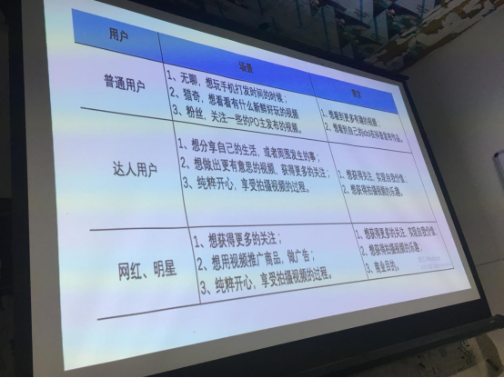 在一种东西火爆的背景下,想要了解它为什么会如此火爆,就必须要了解这种产品的逻辑,了解它的逻辑就要知道它给用户能带来什么,这就是本期精英沙龙的主要目的,带领同学们一起深入了解和学习抖音的产品逻辑。抖音的产品逻辑是三分合作,即消费者、视频生产者、信息平台,三方互生,消费者观看视频消费,视频生产者生产视频供用户共享使用,信息平台则是为前两者提供不同的服务。在两个团队的深入分析和讲解下,同学们都听的很认真,对此很有兴趣。在场的同学基本上都会使用抖音,他们其实也就是消费者和视频生产者,大家都在通过这个平台分享自己身边的趣事儿。对此话题,同学们也比较熟悉,分享中都产生共鸣,互动中让同学们更是获益匪浅。