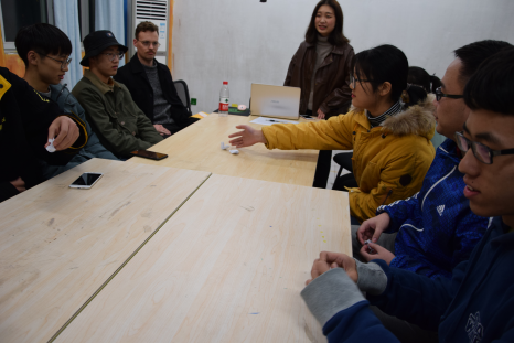 活动开始后,谭江社长把特意准备的一些折叠好的小纸条拿出来放在桌子上,紧接着让同学们自由选择,这样的开始不由得让活动产生了一种神秘感。Peter和唐智盟老师也积极地参与进了这个暖场小游戏中来,每个人选定小纸条后,都满怀期待与忐忑地心情打开了手中的纸条,只见纸条面上写着不同的英语和汉语。然后谭江社长让大家英汉互译,解读出纸条上的语句含义。同学们认真地翻译着纸条上的英文或中文,当恍然大悟地时候不禁都笑了,并感叹着中文和英文之间的差异和共性,两者的同义互译真的十分有趣,就像“我对你一见钟情”翻译为英文为“I fell in love with you at first sight”,这也不失为另一种表达情感的方式,而且用英文说出来感觉更加的动情和唯美。