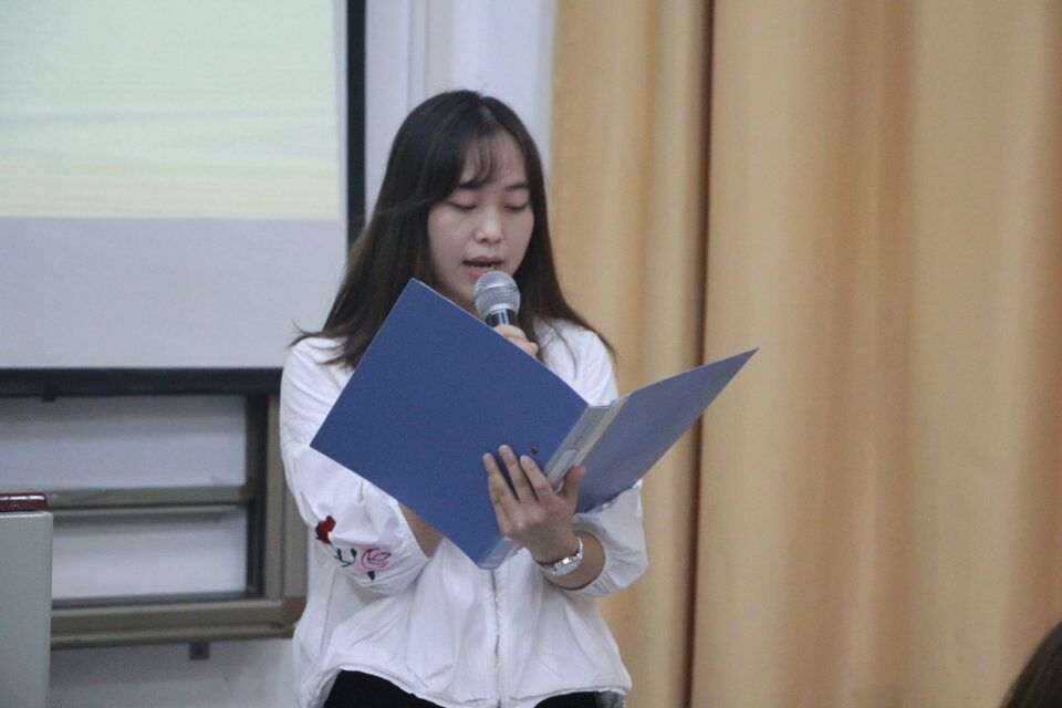 回顾了远景学院2017-2018学年视频以后,大会有请到了远景学院团总支二届二任学生副书记兼社团管理委员会会长朱倩旎学姐进行了上学年的社团工作总结。在工作总结中,朱倩旎学姐说明了上学年社团活动的相关数据信息。她总结到:本期共开展社团活动40余次,其中老牌社团精英之声在本学年开展了17期英语角常规活动,以及举办了英语配音大赛等创新活动。这不仅使得老社团重获生机,还激励了新型社团在原有基础上不断改进。本学年社团与社团,社团板块与其他板块多次联合办活动。推动了社团与社团,社团板块与其他板块的交流。可见社团活动已经占据远景学院学生生活中的很大一部分。