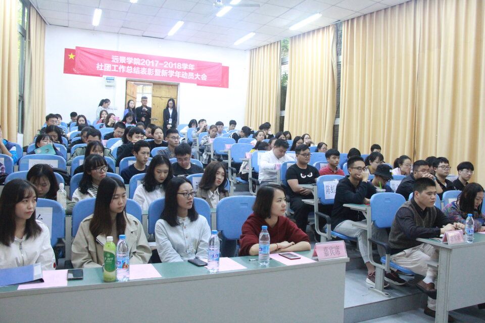 2018年10月31日下午4点30分,迎着久违的阳光,远景学院2017-2018学年社团工作总结表彰暨新学年动员大会在菩提书院阶梯教室隆重举行。学院曾明珠副院长、社团指导老师汪宏宇、团总支学生会主席书记、各社团新老社长及其社员等应邀出席了本次会议。