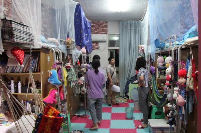 5月10日22:30。生活部和盆栽协会组织全体学生评委对报名寝室进行了突击检查。检查内容包括:门框,地板、垃圾篓、物品摆放等,从检查结果来看大家对此次评比非常用心,将寝室收拾的整整齐齐,恰当的装饰,营造出温馨和谐的氛围。一句好美、真干净是学生评委由衷的羡慕。当然寝室存在问题评委们也会细心一一指出。