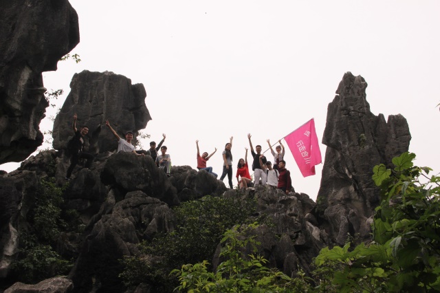 与上一次在夏天的游览不同,刚刚经历过春天的三汇,石林上发育着石芽、溶蚀沟及大量的孔洞犹如太湖石。石林一带的植物分布着层次分明的松树,也有灌木和草坡,还有成片的柑桔、桃、李、梨等。站在石林之巅北望华蓥山,南看三汇镇,数十里秀色,尽收眼底。在东西走向的山崖下,有两汪常年不断的清泉(当地人称之为龙洞清泉)养育了当地的居民,泉水流逝的小溪构成了独具南方小桥流水的神韵,为石林增添了无限的灵气。在经历了昨晚的倾盆大雨,太阳逐渐走出了云朵,虽然最后大家都已经筋疲力尽,但是在漫长的爬山过程中都没有放弃对大自然的美和对徒步精神的坚持,这里看不到孤单前行的身影,只有团结一心、不断前行的队伍。
