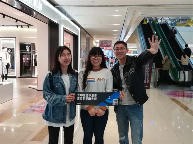 合川,地处三江交界,也是学校的坐落地点,用来作为第一次创行的探索之旅是最合适不过的。作为此次活动的开展之始,各位参与者在后台工作人员的引导下来到了合川的义务小商品批发市场。既然是探索城市,少不了的便是打卡任务,与城市中独特的风景合影留念。但此次活动与往常的打卡不一样,根据后台工作人员的指示,此次参与活动的各位需要寻找的是无障碍设施。