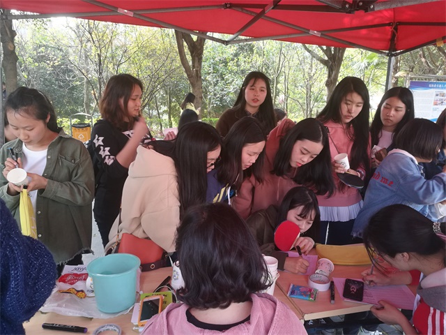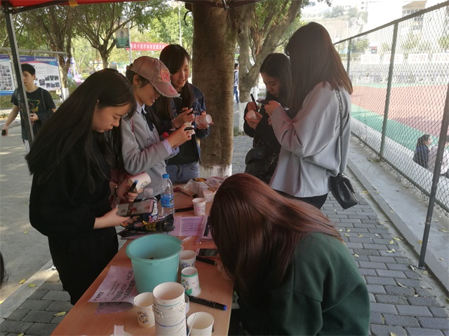 最初,女生们只是带着好奇的眼神匆匆路过。慢慢地,三五成群的女生们停下来询问我们的活动。当得知我们的活动是用纸杯制作简单的手工艺品的时候,大家不由地感慨:“已经是很久前做过手工,仿佛是幼儿园时候的乐趣了。”当天活动现场,同学们充分发挥自己的想象力,专注地做着自己的手工品,仿佛真的回到了儿时,唤起了她们童真,感受着最简单的快乐。