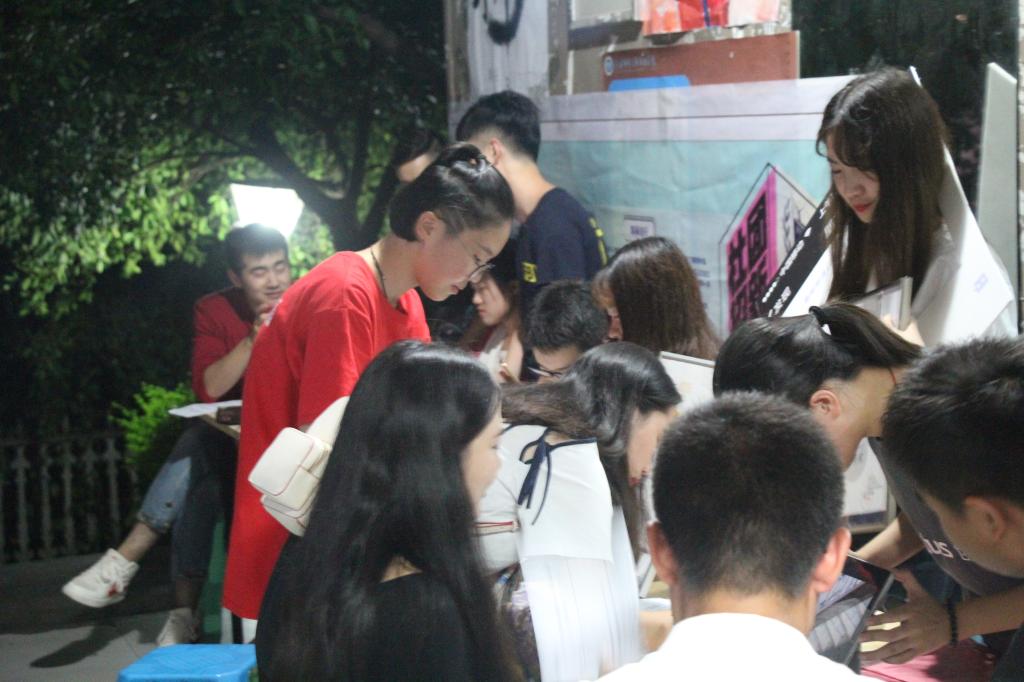 社团管理委员会和各社团为此次招新可谓是提前做足了功夫,中午在菩提书院的教室进行各社团的纳新宣讲,为对自己社团感兴趣的同学一一介绍,希望能为晚上的招新做好准备。随着夜晚降临,八大社团各出奇招,“爱美食,爱生活,更爱DIY”,饕餮川菜社呈现了美味的佳肴,吸引大家的目光;精英之声社团用嘹亮的歌声,劲爆的歌曲让同学们驻足聆听;不出户牖而知天下,盆栽协会用各类盆栽为大家展示了知万物所造化的一花一草;创行社团则用奋斗历程,奖章荣誉等创行精神感染来往的同学;观影会用各式各样的电影片段引起热爱电影远景学子的共鸣;行走合川让喜欢户外运动的同学相见相识相知,丰富多彩的课余生活;纳氏心角落用心灵触动着每一位同学等。一派社团独有的宽松愉悦氛围感染者每一名远景人。