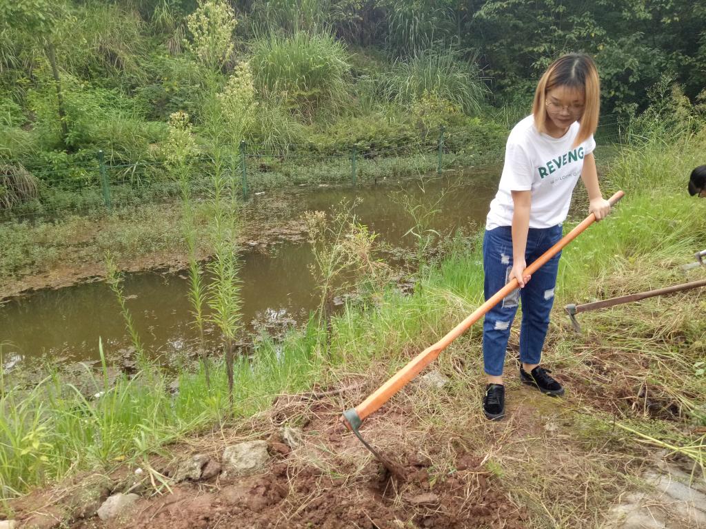 很多地方杂草已经长的很高了,蚊虫也很多,但大家依然性质高涨,女生也拿起镰刀清除路边的杂草,男生则承担了大部分重活,除奋力挥动锄头松动土地外还需搬运除完的杂草。原本杂乱的土地,在大家的齐心协力下,终于焕然一新,为接下来的播种打下了坚实的基础,也注定拥有一个好的收成。
