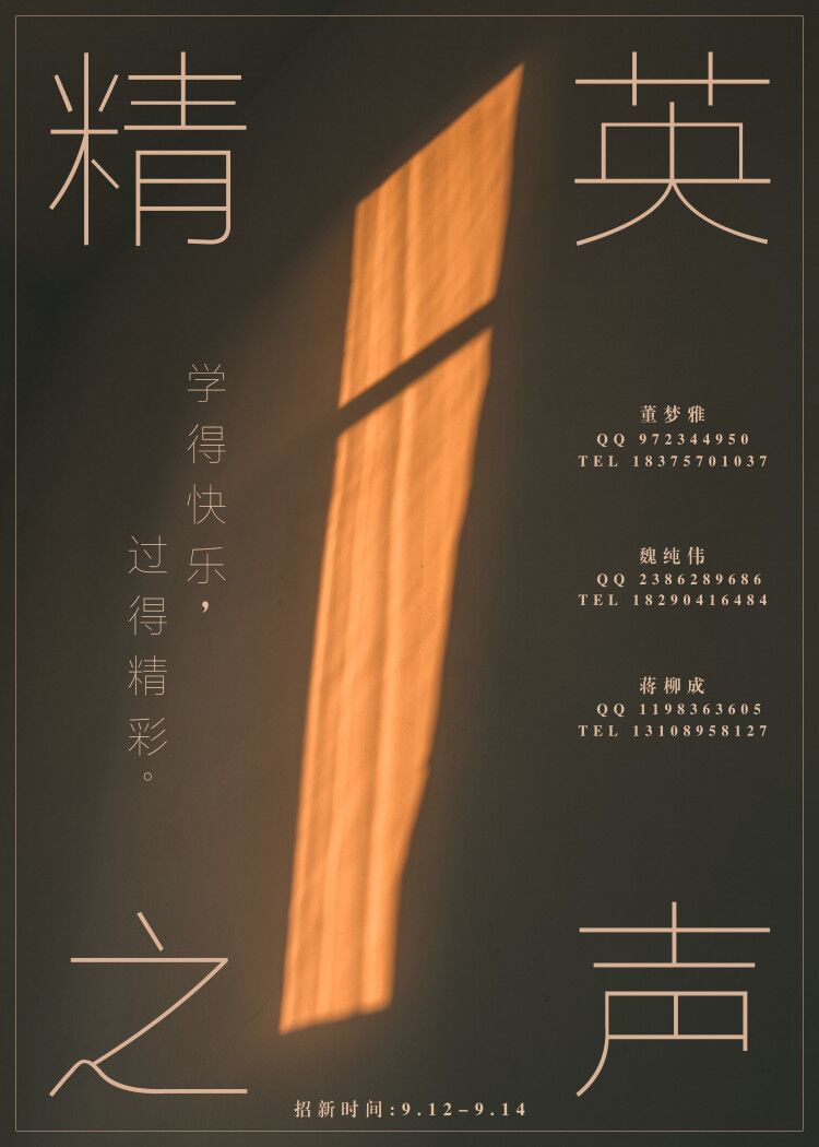 精英之声旨在让同学们在学习中享受快乐,在玩耍中增进友情,聚餐交流、读书分享、骑行活动、游戏互动等等能让课余活动生动起来。
