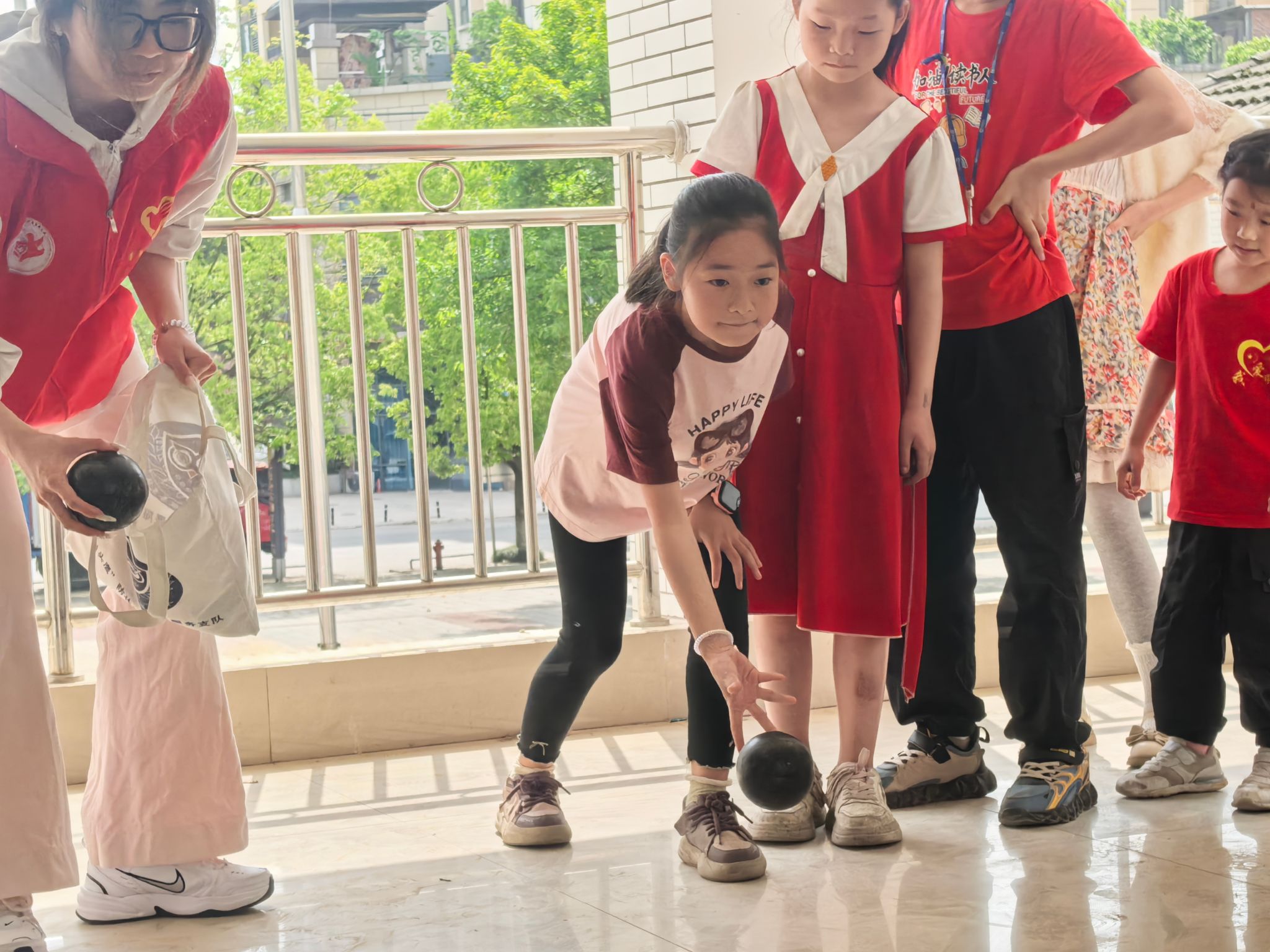 活动以“力学小课堂+趣味保龄球”开启。志愿者用简易道具演示“力的传递”原理,通过动画短片解析保龄球运动中的物理知识。孩子们分组尝试投掷,在击倒球瓶的欢呼声中,直观感受“角度、力度与轨迹”的关联。有的小朋友反复调整姿势,专注计算投掷路线;有的团队协作记录得分,探讨如何精准发力。现场笑声此起彼伏,科学探索的种子在欢乐中萌芽。