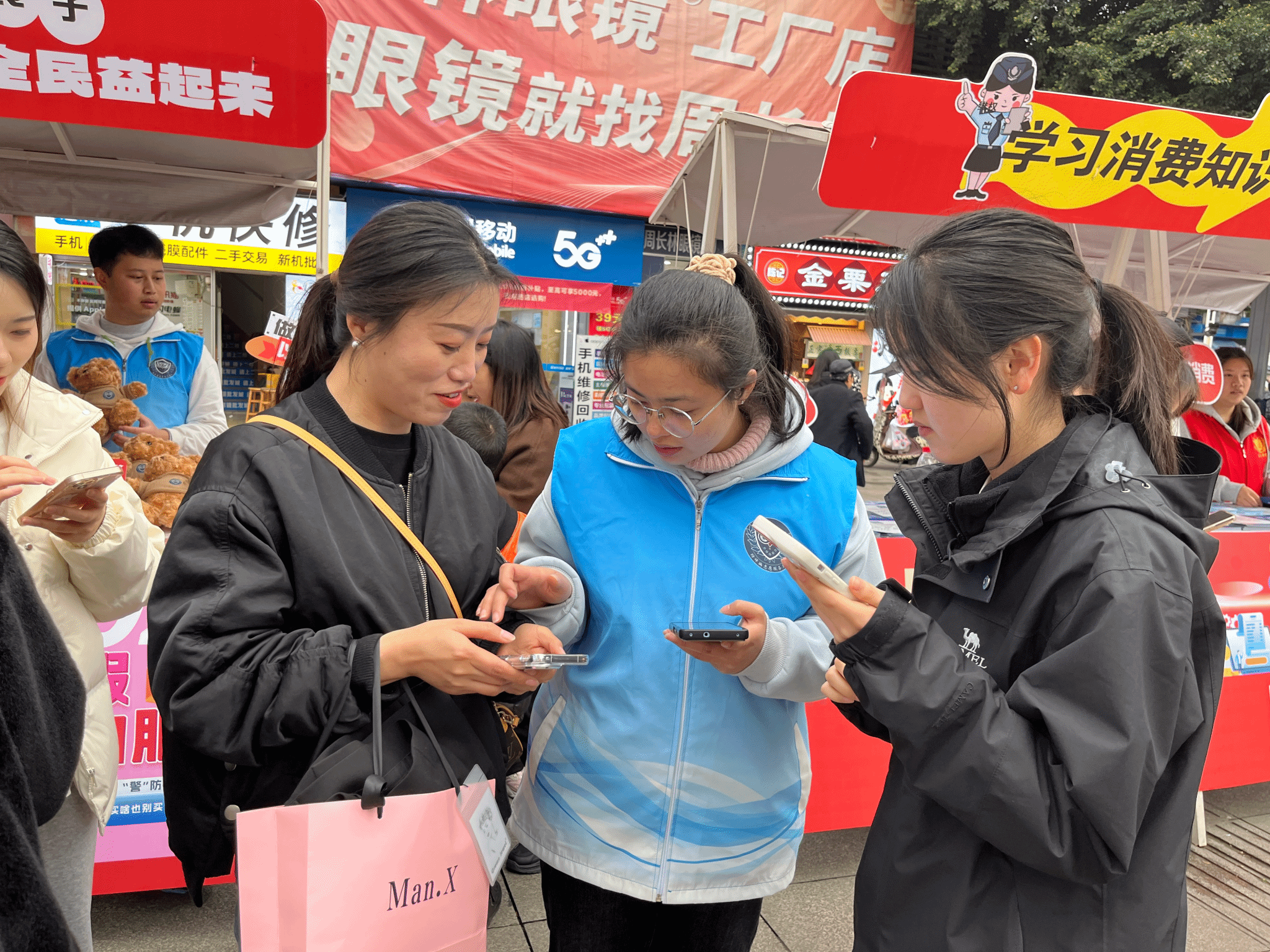 2025年3月15日,在国际消费者权益日当天,远景学院青年志愿者协会与远景学院2023级03团支部协助合川公安局、合川区市场监管局等多单位在智慧广场开展“智慧防诈·益起行动”315消费者权益保护日活动。