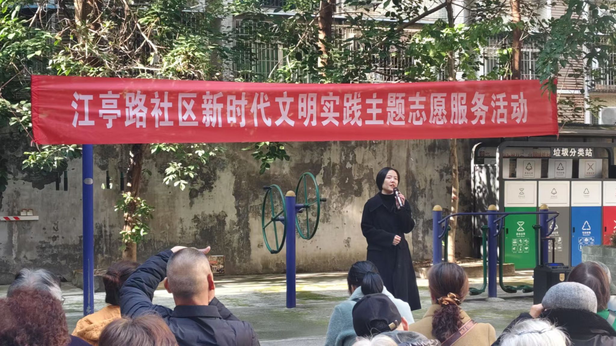 活动伊始,由江亭路社区书记裴倩进行开场发言。裴倩书记强调建设文明社会的重要性,明确指出文明礼仪不仅是个人素养的外在体现,更是构建和谐社区乃至和谐社会不可或缺的坚实基础。她的发言为整个活动奠定积极向上的基调。