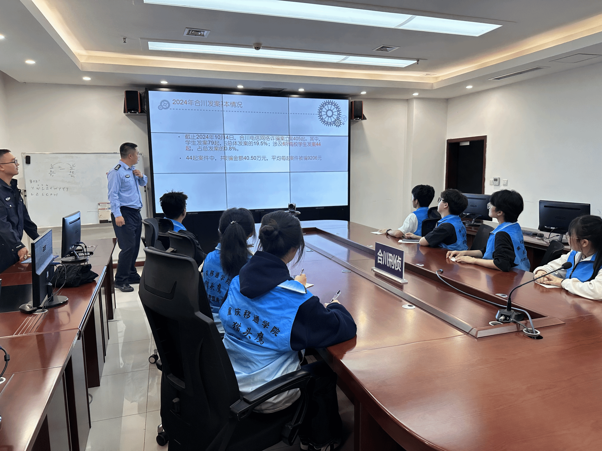 为进一步加强“猫头鹰”反诈骗志愿服务支队成员专业性,10月16日,“猫头鹰”防诈骗专项志愿服务支队整装出发与指导老师杨斌誉老师一同前往合川区反诈骗中心接受系统培训,了解新型诈骗手段,掌握必要防范技能,为后续在校园内外开展防诈骗活动打好基础。