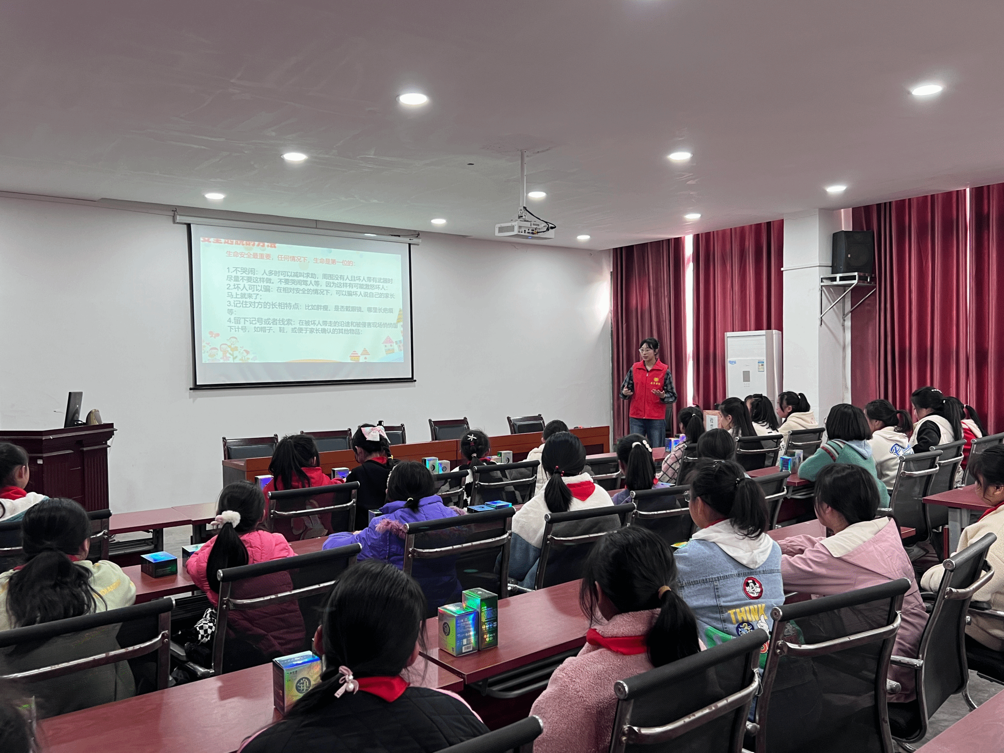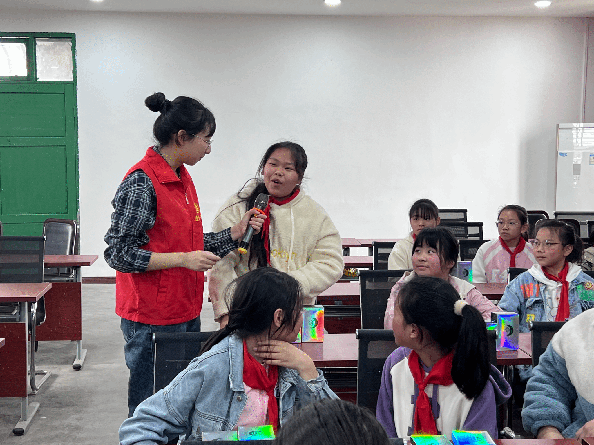 接着,志愿者通过开展“我说你做”的小游戏,教导同学们如何正确认识自青春期时期自己的身体、生理健康知识、卫生物品使用、女童自救自护等问题,运用生动幽默的语言为学生们带来了一场辨识和防侵害的讲座。
