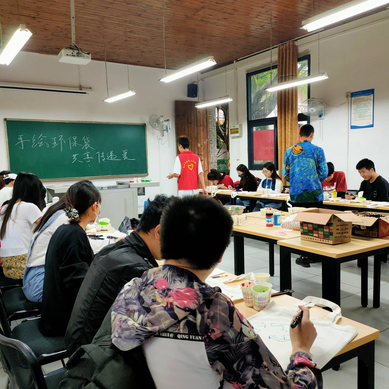 环保是当下社会的热点话题,白色垃圾的污染是造成生态破坏的重要因素之一。为了减少白色污染,强化同学们的环保意识,增强绿色共享理念,2021年5月29日远景学院青年志愿者协会同爱莲书院联合会秉承着——减少白污染,双手相牵传递爱,携手在菩提书院组织开展特色活动“手绘环保袋,绿色传递爱。”志愿者们发挥想象,亲手绘制可降解环保袋,并将这些环保袋放置在爱莲书院和菩提书院远景楼等四个放置点,以便各书院同学们共享借用,发挥将“保护环境,从自己做起”的理念深入人心。