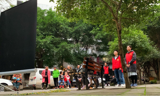 为丰富社区学生课余生活和老年人闲散时间,增加对日益强大的祖国的认识,远景学院青年志愿者协会“益起观影”志愿服务专项支队于2019年11月13日星期三下午,前往合川区南津街江亭路社区,播放爱国热血电影《战狼2》。