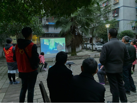 我们正奋斗在为实现中华民族的伟大复兴而不懈努力的征程上,本次活动通过播放电影的形式,为社区传播浓厚的爱国氛围,感染了每一位观影者。活动结束前,观影的社区老人们对志愿者们表达了感谢,这极大的鼓舞了志愿者们的信心,使志愿者更加能够理解“牢记使命,不忘初心”这句话的真谛,使志愿者们坚定不移的为志愿服务工作贡献出自己的力量!