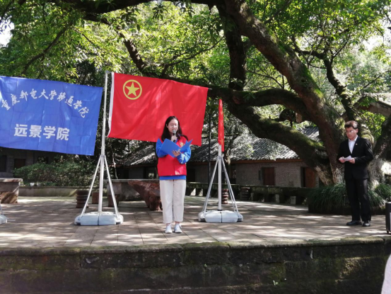 红马甲是志愿者的光荣牌,在晌午阳光的照射下显得格外温暖。在远景学院青年志愿者协会总支队长唐双同学的带领下,志愿者们光荣地举起右手,在菩提树的见证下,郑重宣誓。字正腔圆,铿锵有力。“尽己所能,不计报酬,帮助他人,服务社会。践行志愿精神,传播先进文化,为建设团结互助、平等有爱、共同前进的美好社会贡献力量!”漫漫远景志愿之路,激情饱满、活力无限的志愿者们,携手共进!