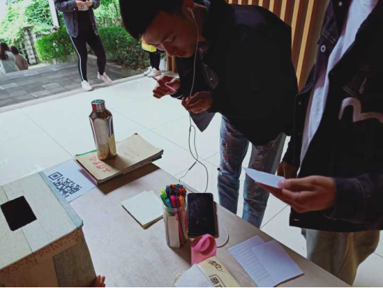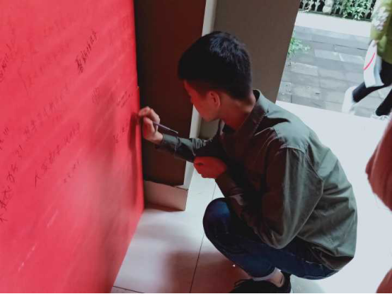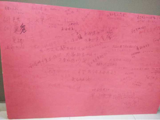 同学们写完自己的烦恼后又在旁边的正能量KT板上写下了满满的正能量话语。“加油!多笑!”、“自己能够更加勇敢地面对生活,加油!”、“考研加油”等等积极的话语,既是对自己的鼓励,又传递了满满的正能量。大家都希望能够积极微笑面对生活,丢掉烦恼。