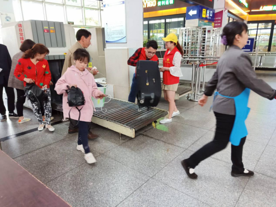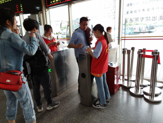 志愿者们到达车站后,很快便找到自己想做的事,尽管有的志愿者是第一次参加,但短时间内就能进入状态,跟着之前参加过的志愿者学习。帮助旅客搬行李以减轻行人负担、为旅客检票以减少排队时间、教助不懂网上购票的乘客购票等等,这都是志愿者们传递的爱心。那是一个充满欢笑和温暖的空间,在那个空间里,有一群可爱的志愿者们。