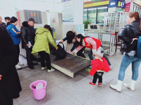 在车站,看着不断来往的行人,他们都在赶路的途中,但有很多人愿意停下匆匆的脚步同我们打声招呼,在我们帮助完后轻轻道一声谢谢,其实这就是志愿者们得到的回报,它可能一文不值,但也重值千金。