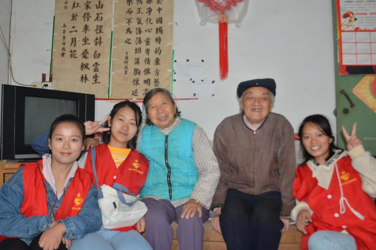 2018年10月20日,远景学院的青年志愿者们前往南津街江亭路社区开展了本学期第一次“夕阳服务”关爱空巢老人志愿服务活动,志愿者走进两位老人的家里,听他们讲述过去的故事,给他们带去祝福与温情。