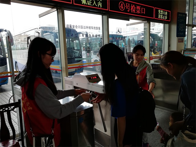 在C6门口,所有的志愿者都按时完成了集合,快速前往了合川客运中心,志愿者们经过了一年的洗礼,对于志愿者活动已经是轻车熟路,所有的环节都高效了不少。到达车站后,在车站工作人员的安排下,志愿者们都分配到了自己的工作,开始在自己的工作上帮助车站的旅客,缓解车站工作人员的压力。