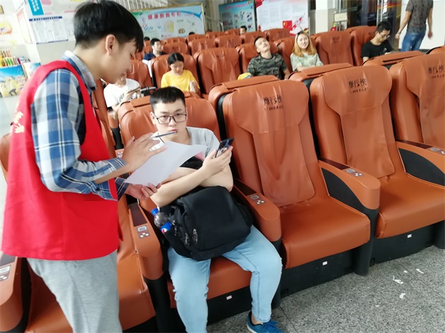 在这次活动中,志愿者们还准备了许多调查问卷表。趁着乘客们在座椅上休息时,志愿者们将调查表发放给正在候车的旅客,征求他们对志愿活动的看法。乘客们对志愿者们来车站的实践活动给予了一定的肯定与表扬,同时也建议在志愿活动时可以与乘客沟通、与工作人员多交流经验,来提升志愿者的工作效率。有了乘客们客观的评价与建议,相信我们的活动将越办越好!
