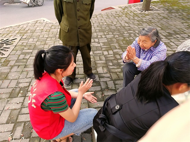小朋友们打累了,靠在社区健身器材上休息的空当,我们看到了两个熟悉的身影,他们是夕阳服务帮扶的对象。爷爷和奶奶趁着今天的好天气出来晒晒太阳,碰上了志愿者,让他们很是惊讶。奶奶高兴的拉着我们,话家常里短。小朋友们不再像刚才打球那样调皮,拉着爷爷奶奶散步,给他们分享学校里面的故事,逗得他们藏不住的笑意四处飞。