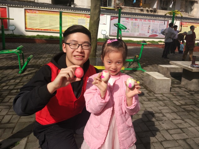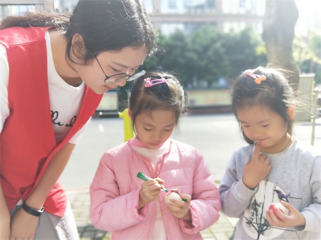 志愿者给小朋友讲述复活节的故事,随后一起制作彩蛋,让小朋友感受异国文化风采。在小朋友的笔下,小小的蛋壳变成了一片任想象力驰骋的草原。蛋壳印上了小朋友心里最纯洁、美好的向往与祝福,每一枚彩蛋,都是那样多彩和鲜艳。