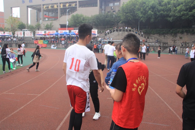 志愿者给“大本营”装上美丽的标识,让运动员养精蓄锐;在赛场上来回穿梭,为运动员带去更大的动力;在比赛中止时清理垃圾,使同学们更加舒适地观看比赛。志愿者奋战在志愿服务的一线,誓做最优秀的后勤主力军!