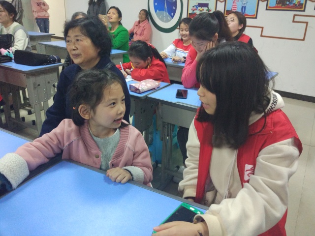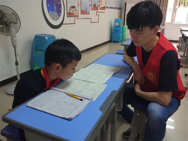 小朋友们在做题过程中,与志愿者分享最近的学习生活,听到小朋友们说志愿的哥哥姐姐们教的方法很实用,能将平时看起来很难的作业细细的破解,并且是小朋友自己通过思考得到了正确的答案时,志愿者们感到十分开心,认为一切都是值得的。“我觉得自己算出来了答案比爸爸给我买了新玩具还要开心。”一个小男孩高兴的拉着一个志愿者的手,满脸高兴地说,听到小朋友有如此的感悟,也算是一种美好的成长吧!