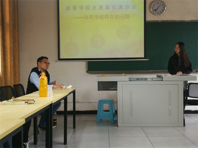 在交流活动的最后,志愿者代表们或多或少为志愿者活动提出了自己的宝贵意见,为远景志愿体系的完善贡献力量。其中涉及志愿者活动的考核,志愿服务能力的讨论有了近一步发展,使反学分导向、更纯粹的志愿者活动得以实践开展,这是远景人在实践完满教育中志愿工作上做出的一份努力。
